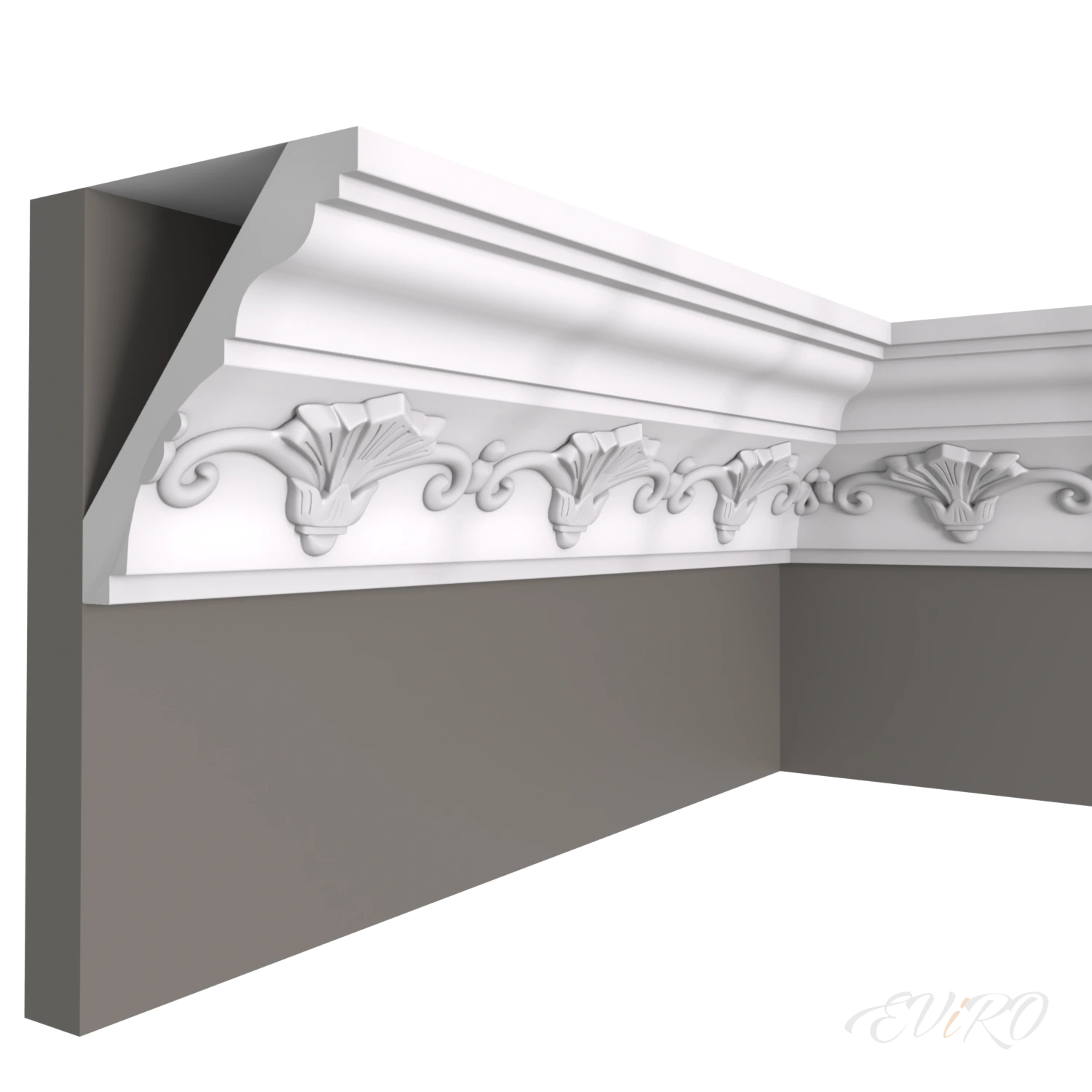 Специалисты компании ЕВиРО с большой ответственностью подошли к создаваемым моделям гипсовых карнизов с орнаментом, каждая модель неповторима и по-своему уникальна. Материал, из которого изготавливаются карнизы фабрики ЕВиРО, скульптурный гипс, армированный стеклофиброволокном, является экологически чистым, не горючим, влагоустойчивым, а так же прочным и долговечным. Карнизы ЕВиРО из скульптурного гипса могут быть окрашены в любой цвет, а так же могут быть отделаны с эффектом серебра, золота, стали, дерева и другого декоративного напыления. Гипсовые карнизы ЕВиРО совмещают в себе красоту и надежность. Применение карнизов ЕВиРО в интерьере обеспечивает определенный шик и уют.