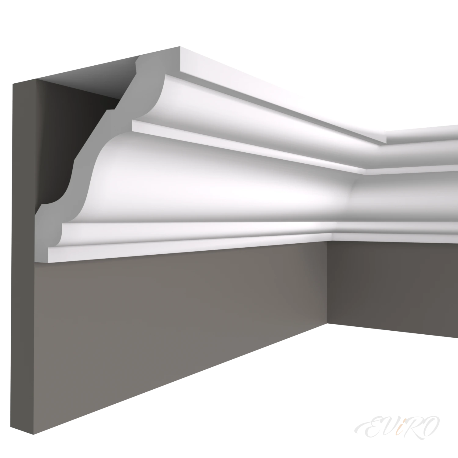 Специалисты компании ЕВиРО с большой ответственностью подошли к создаваемым моделям гипсовых карнизов с орнаментом, каждая модель неповторима и по-своему уникальна. Материал, из которого изготавливаются карнизы фабрики ЕВиРО, скульптурный гипс, армированный стеклофиброволокном, является экологически чистым, не горючим, влагоустойчивым, а так же прочным и долговечным. Карнизы ЕВиРО из скульптурного гипса могут быть окрашены в любой цвет, а так же могут быть отделаны с эффектом серебра, золота, стали, дерева и другого декоративного напыления. Гипсовые карнизы ЕВиРО совмещают в себе красоту и надежность. Применение карнизов ЕВиРО в интерьере обеспечивает определенный шик и уют.